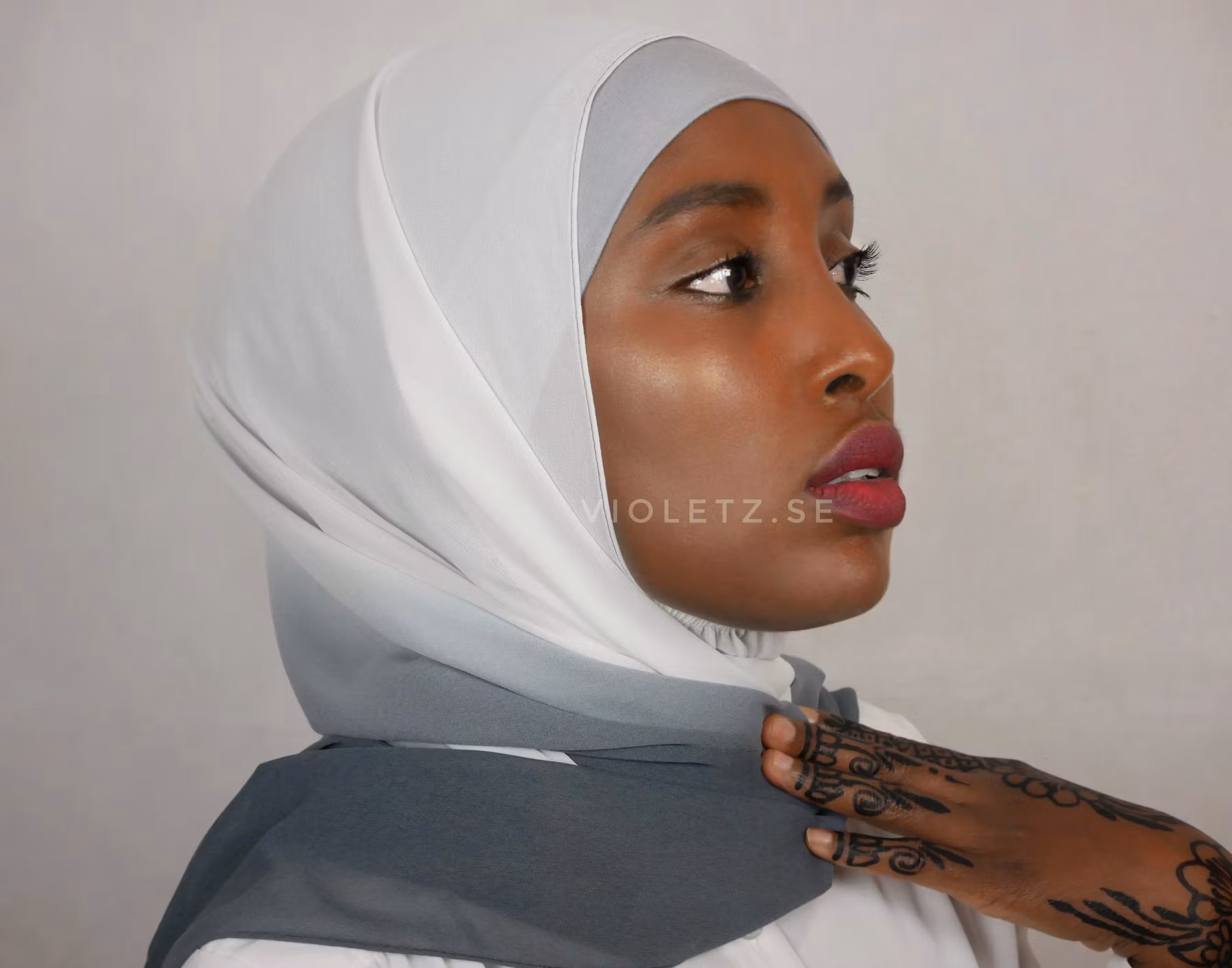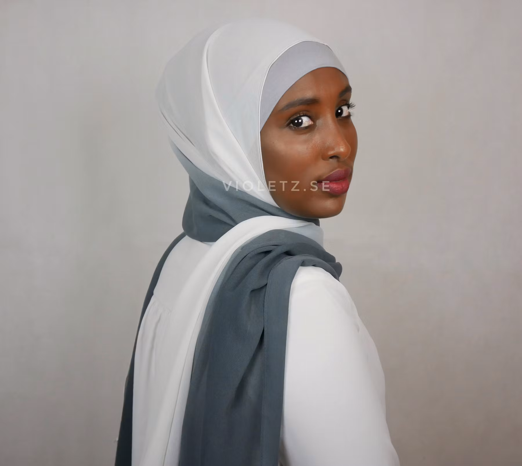 Just denna chiffongsjal är försedd med sömmar under hakan, som täcker för din hals och håller sjalen på plats utan att du behöver använda nålar. Till varje sjal medföljer en matchande undersjal i premium bomull, som garanterar att inget hår sticker fram vid hårfästet. Resårbanden som sytts in i sjalen gör sjalen bekväm för alla bärare, och du behöver inte bekymra dig för märken under hakan eller en sjal som spänner runt tinningarna.